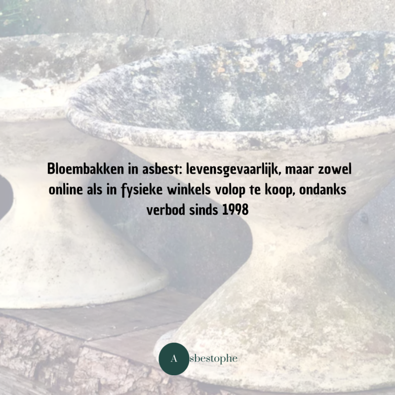 Er worden nog steeds producten met asbest verkocht, ondanks dat de verkoop van asbesthoudende materialen al 25 jaar verboden is vanwege hun kankerverwekkende eigenschappen. Toch zijn bloembakken, tuinmeubels en zelfs hondenhokken van asbestcement gemakkelijk te vinden, zowel in winkels als op tweedehandssites. Soms worden er zelfs hoge bedragen voor gevraagd, terwijl de gezondheidsrisico’s er gratis bij komen.